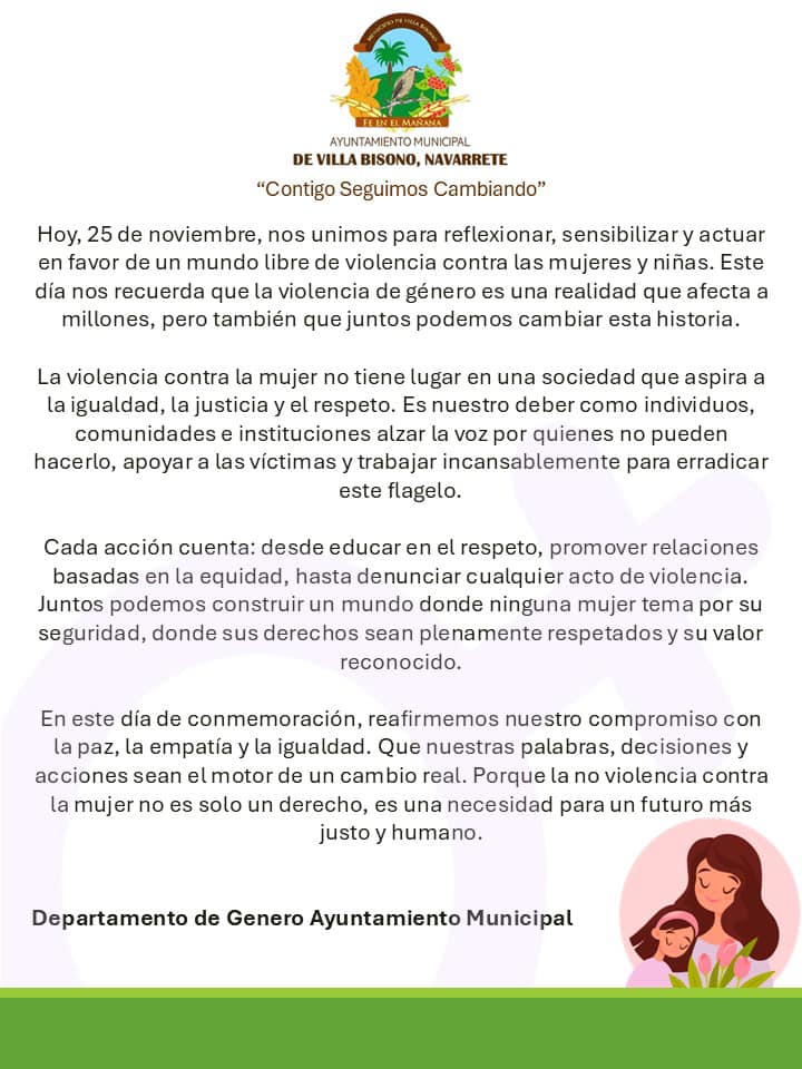 25 de Noviembre Día para la eliminación de la violencia contra la mujer.