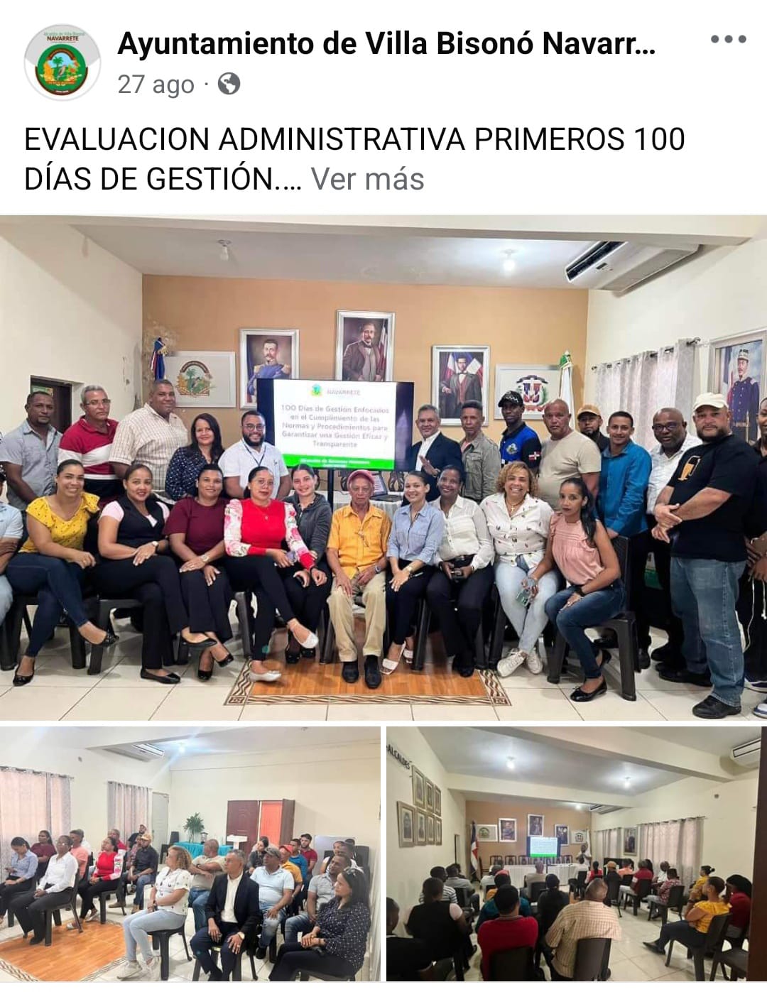 Por instrucciones del honorable alcalde Noel Peralta y dando fiel cumplimiento al programa de gestión , el departamento de Recursos Humanos Dirigido por el señor Geury vargas convocó a todos los encargados de departamentos y empleados administrativos a una importante reunión con el propósito de evaluar los primeros 100 días de gerencia municipal para el trabajo de los planes de mejora .