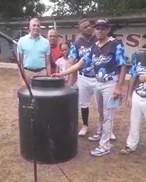 Nuestro Alcalde Noel Peralta dando respuesta a la solicitud hecha por equipo de softball Los Monstruos de Villa Nueva entrega un tinaco para el pley de esa comunidad.