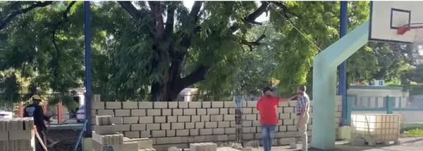 Nuestro Alcalde Noel Peralta supervisa los trabajos de la cancha del barrio Duarte.