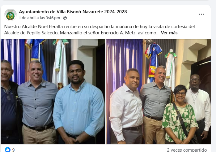 Nuestro Alcalde Noel Peralta recibe en su despacho la mañana de hoy la visita de cortesía del Alcalde de Pepillo Salcedo, Manzanillo el señor Enercido A. Metz así como también una comisión de la Parroquia Nuestra Señora la Virgen de los Dolores encabeza por el Rev. Padre Richard Dantil.